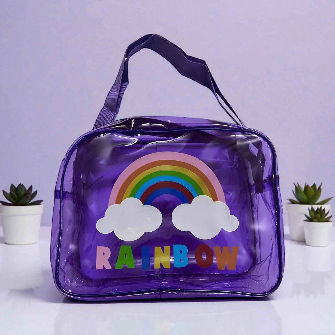 Cartoon Prints Transparent Neon Carry Bag (Assorted Color, MOQ 4)