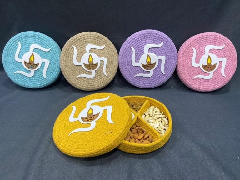 Multi-Color Dry Fruit Tray Lid Eco Friendly Handmade Cotton Rope Collection 9×9 inch (Model No. 7, Assorted Colors)