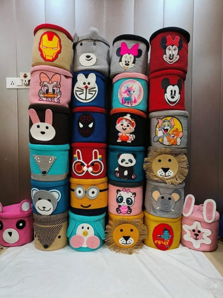 Multiple Cartoon Theme Storage Basket with Lid Eco Friendly Handmade Cotton Rope Collection 15×10 inch (Assorted Prints, Model No. 16)