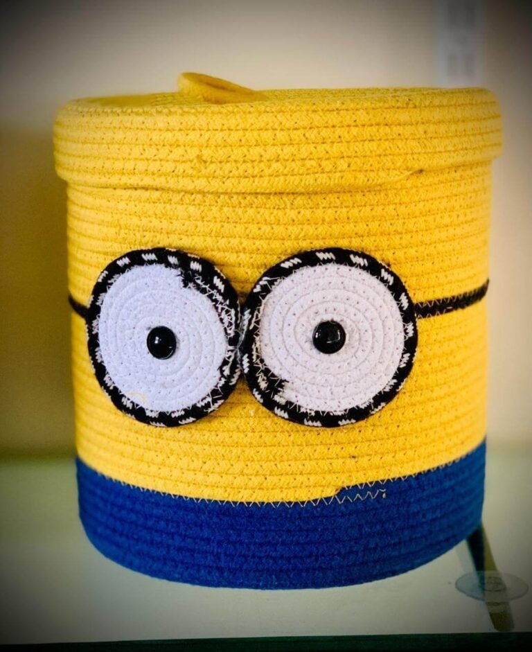Yellow Blue Cute Face Cotton Rope Storage Box 12×8 inch (Model No. 36)