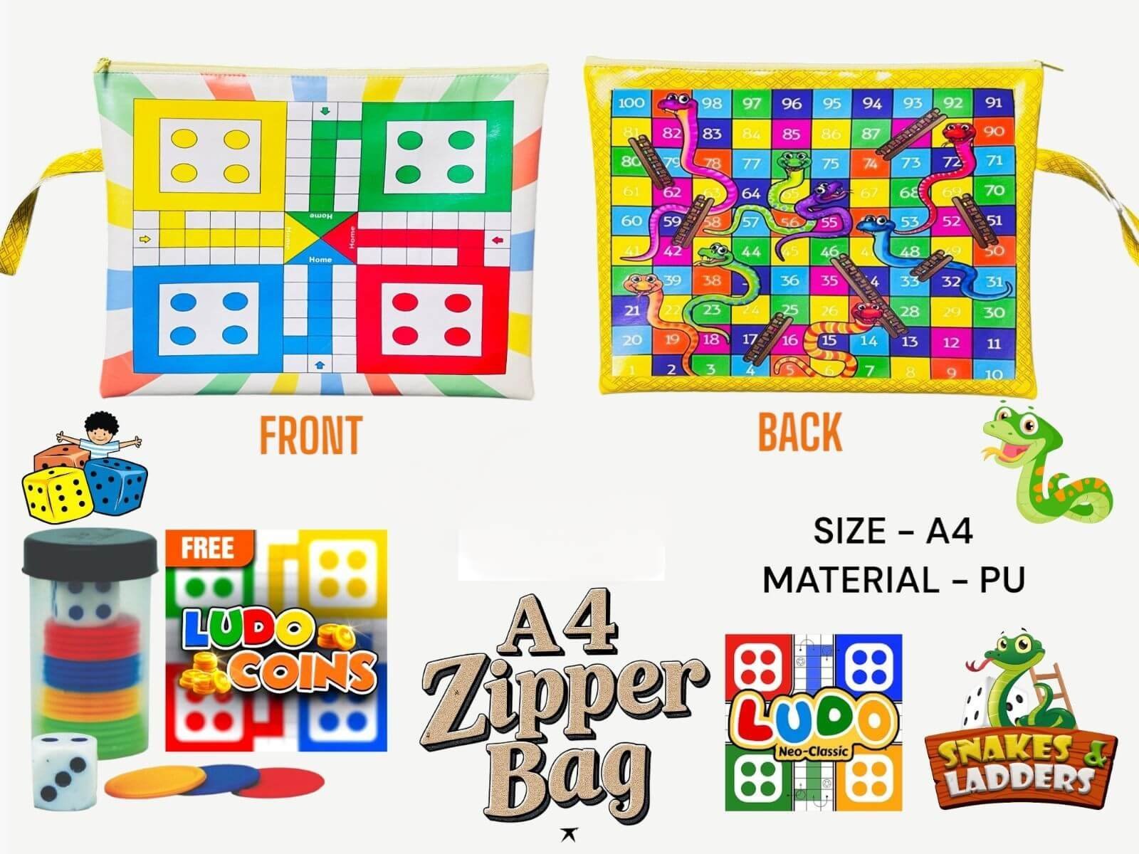 FULLKART Ludo & Snake-Ladder Game: 2-in-1 Ludo & Snake-Ladder Game Zipper Bag for Kids.