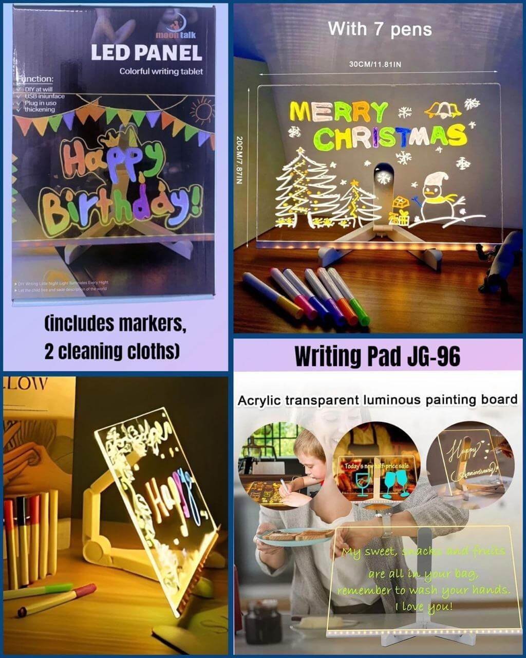 FULLKART Writing Pad Contain: Acrylic transparent luminous painting board, 7 Markers, 2 Cleaning Clothes.