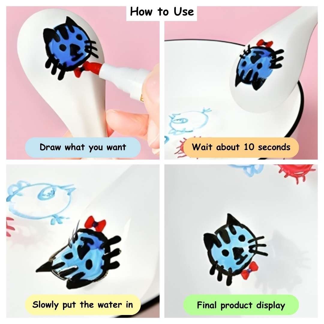 Magical Water Painting: Use these FULLKART magic water color pens to paint on the spoon. The water-based design makes it insoluble in water, and the drawn animals will swim around, which is very fun!