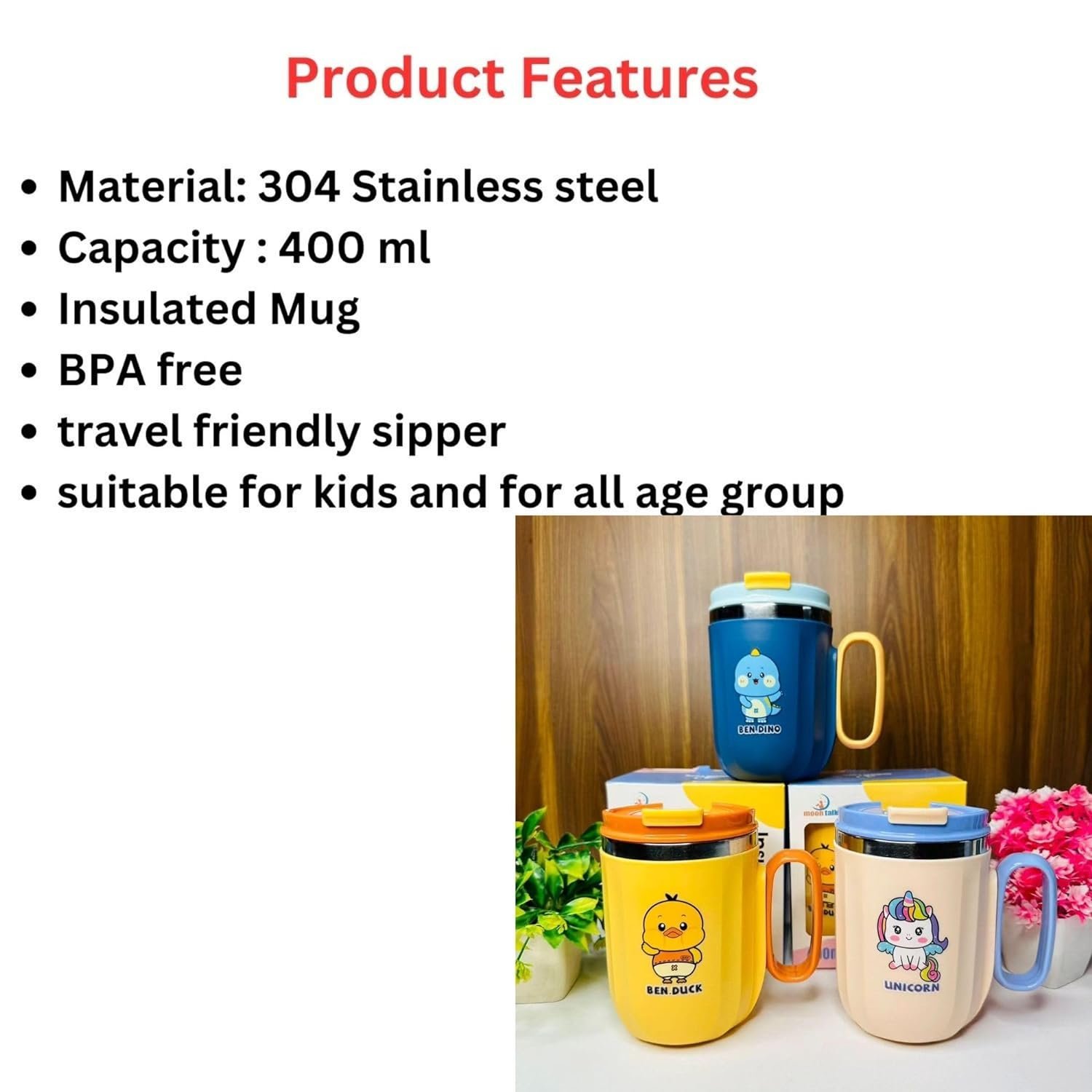 Durable Material: This FULLKART stainless steel mug is made of good-quality stainless Steel and PP material. This colorful cup is attractive to the eyes of the kids and makes them want to drink more frequently.