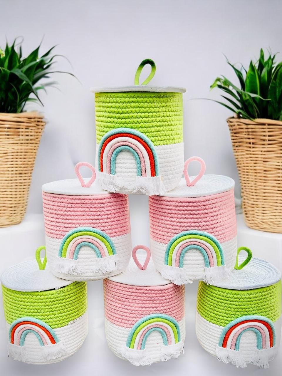 Perfect Storage: This cotton rope decoration storage basket size. It can be used in the baby room, nursery, living room, bathroom to store fruits books keys or magazines, and children’s toys. Each storage basket has a lid, which can keep the items in the basket clean and tidy.